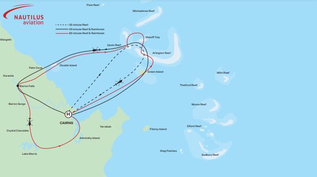 Our most comprehensive scenic flight, combining all the highlights of the 45 minute Reef & Rainforest flight with a further 15 minute extension along the rainforest covered escarpment of the Lamb Range including Crystal Cascades and beautiful Lake Morris.