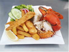 Mud Crab or Seasonal crab, fish, chips, Calamari Rings, 1 Oyster & salad