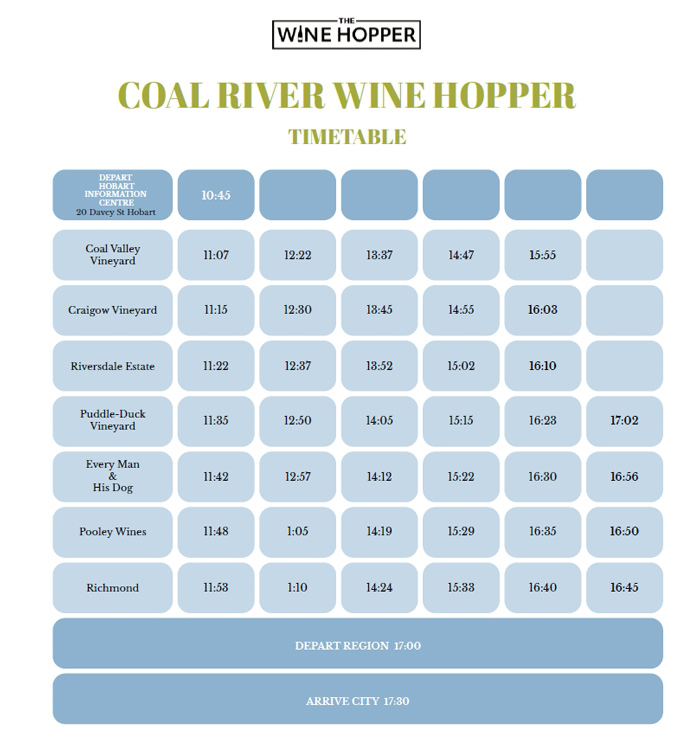 Departing from Hobart at 10:45 AM and returning at 5:30 PM, The Wine Hopper takes you on a journey through some of Tasmania's most celebrated wine regions.