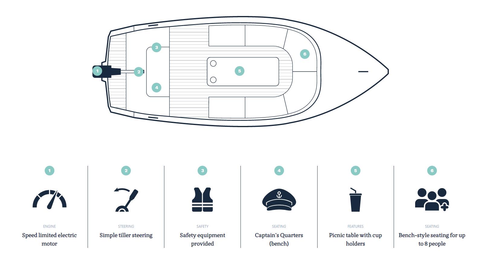 All our boats are fully electric, so you can cruise knowing you’re treading lightly on the environment. GoBoat is committed to improving local waterways, regularly patrolling and collecting rubbish from the area.