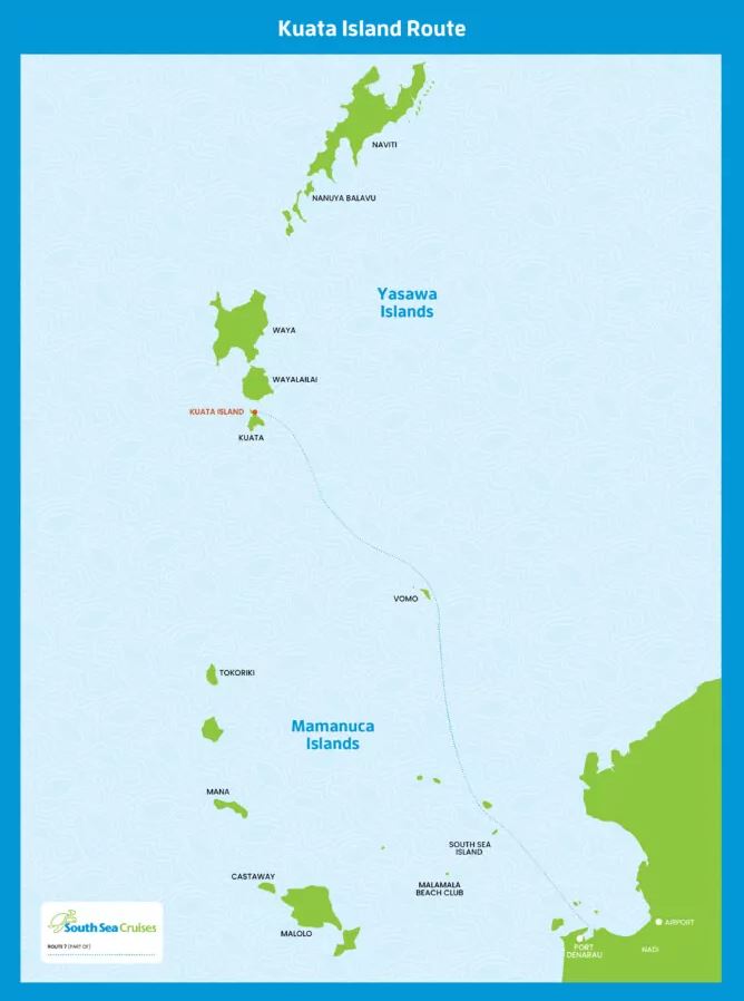 Kuata Island is known for its friendly hospitality, superb location, and warm waters. Boarding from Port Denarau, you will cruise for 1 hour and 45 minutes past the stunning Mamanuca Islands en route to the southern end of the Yasawa Islands where the delights of your island paradise await you.