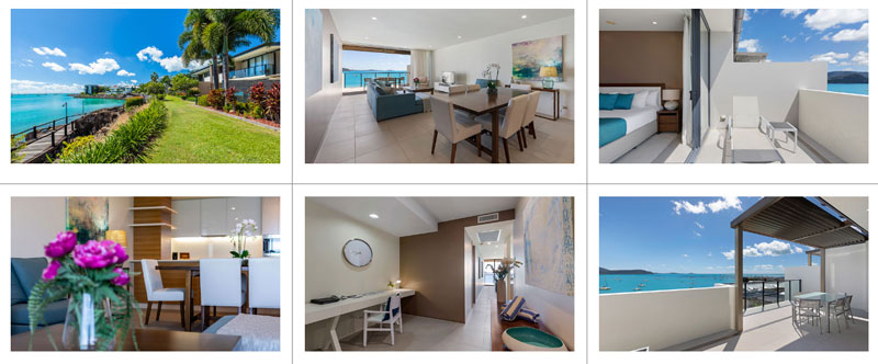 Mirage Whitsundays Dream Resort, a 4.5-star resort, boasts a unique beachfront location on the Whitsunday Islands. It offers a variety of accommodation options for guests to choose from, including Dream Apartments (Garden View), Luxury Apartments (Ocean View), Executive Apartments (Ocean View + Private Pool), Two-Level Waterfront Villas (Ocean View + Private Pool), Three-Level Waterfront Villas (Ocean View + Private Pool), and Four-Bedroom Top Floor Luxury Apartments (Ocean View + Private Pool). Each unit can accommodate 6-8 people and is equipped with top-notch amenities. All room types include a fully equipped kitchen and laundry facilities. The rooms are spacious and offer stunning views.