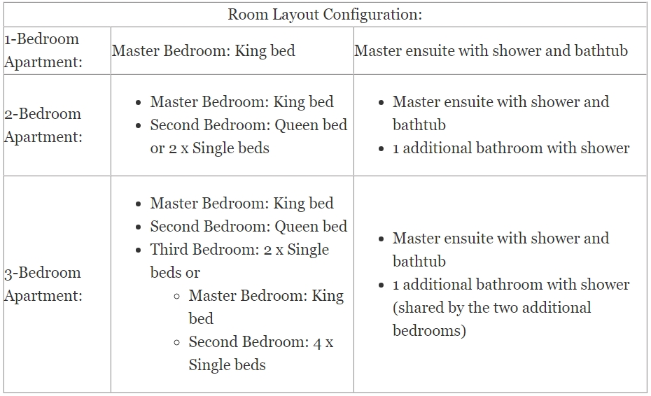 The Garden View, Ocean View, and Waterfront Apartments are available in 1, 2, and 3-bedroom options, ensuring that there is a suitable accommodation for any group size, catering to the needs of families of all sizes.
