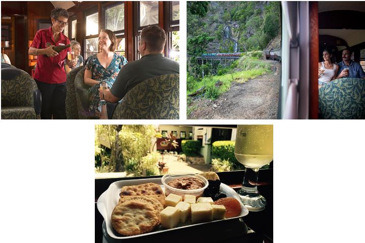 The original Kuranda Scenic Railway Heritage Class carriages offer the old-world charm of travelling in authentic timber carriages, some of which are up to 100 years old. Experience your scenic journey in the refurbished original red-wooden heritage carriages. Sit back and enjoy the scenery and numerous photographic opportunities as you wind through World Heritage-listed rainforest.