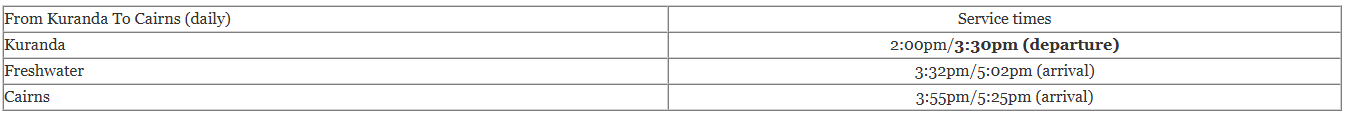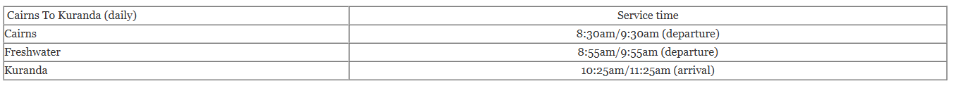 Please Note: No Gold Class service is offered between Cairns and Freshwater Station. All customers are welcome to commence or end their journey at Cairns Station.
