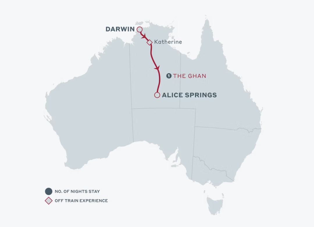A legendary train. An unforgettable Australian adventure. Travel aboard The Ghan between Alice Spring and Darwin on an all-inclusive journey through the heart of Australia.