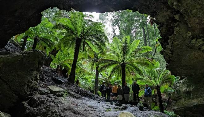 This day offers a deeper experience of the Tarkine. This ancient rainforest is the second-largest cool temperate rainforest in the world. It is a wilderness area that holds ancient relics of animals and plants, as well as Palawa indigenous heritage sites from thousands of years ago. Enjoy several stops along the loop, such as Sumac Lookout, which offers breathtaking forest views across the Arthur River, and Trowutta Arch, which is an extraordinary geological wonder. Returning to the North West Coast, you’ll explore several seaside stops along the way, including a visit to the idyllic Boat Harbour Beach, Table Cape, and the town of Penguin, before arriving at your accommodation in Devonport. There'll be a group dinner, and then you'll be free to relax.