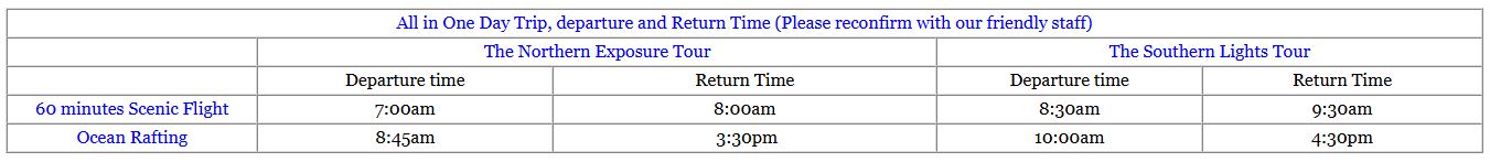 PLEASE NOTE: Full names and exact weights per passenger must be advised when booking due to flight weight availability.