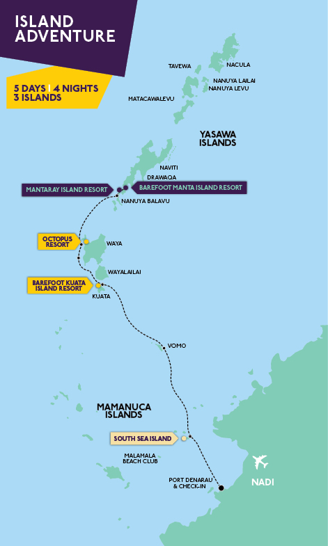 The Island Adventurer Package lets you explore three islands and three different resorts in five days, ensuring you make the most of your time in Fiji. Hop on the Yasawa Flyer and dive into the vibrant and tropical islands, where you can enjoy bushwalks, underwater adventures, sightseeing, and more. This package includes three iconic experiences that Fiji is known for, and the rest is up to you to customise your adventure.