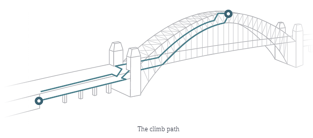 Summit Insider Climb for the next few months until this work has been completed. This will not impact the duration of the Climb and the alternate route is shown in the image below. It will give guests the advantage of being right above the road deck in the middle of the bridge for part of their Climb.