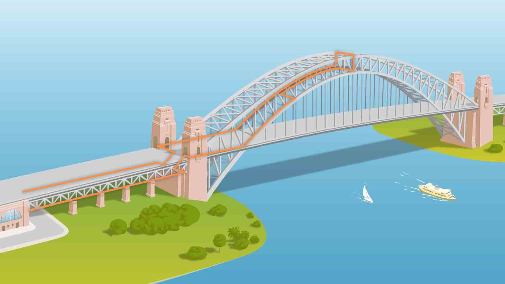 Latching on at the Climb Base below the Bradfield Highway, you will walk below the road deck until you reach the South-East Pylon. There you will go up four ladders to the start of the upper arch. With the Summit in sight, your journey continues along the Bridge’s upper arch on the Opera House side until you hit the top. After a Summit celebration with your group, you will cross to the west side to make your descent to Climb Base.