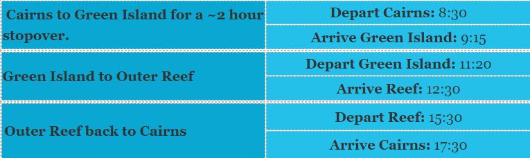 Great Barrier Reef & Green Island Adventure Departure & Arrival Times.