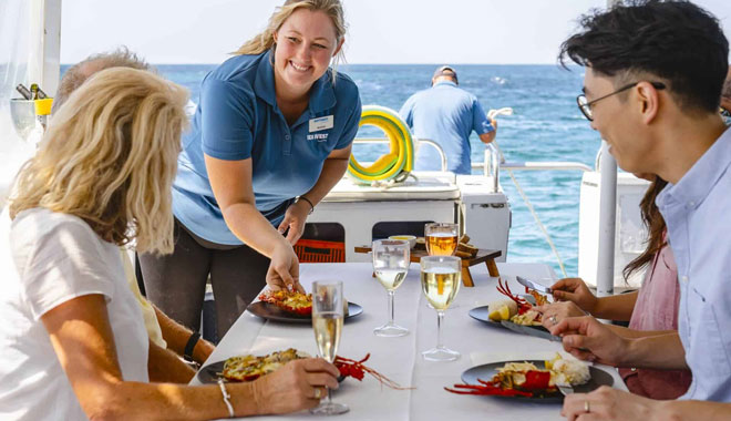 Indulge in deluxe dining on the water in Mandurah, on a 3.5 to 4-hour Luxe Seafood Cruise. South of Perth, Mandurah has been a seafood centre for over 100 years in Western Australia. Catch your own Western Rock Lobster and enjoy a chef-prepared, 7-course seafood degustation, with unlimited beverages and stunning views.