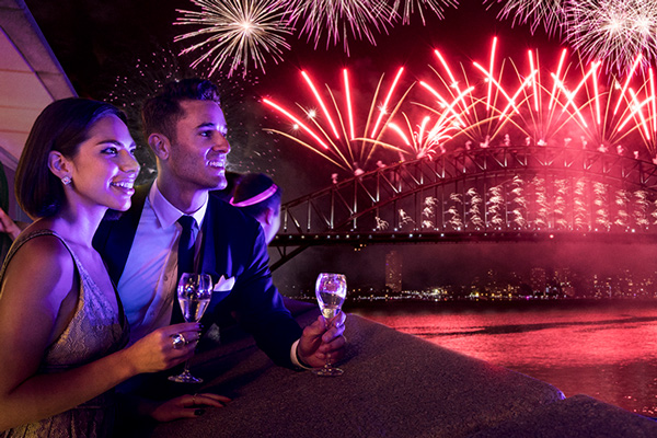 Canapés, drinks, and live entertainment in the Northern Foyer, with views of the spectacular midnight fireworks on Sydney Harbour.