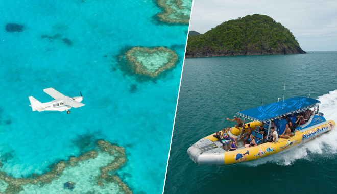 Fly & Raft Full Day Adventure : 60 mins Whitsunday Scenic Flight & Ocean Rafting Package)