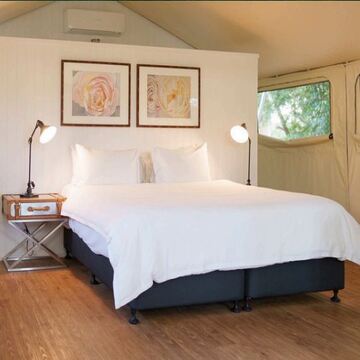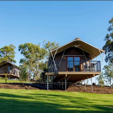Escape to your own elegant tented suite in the tranquil bushland of the Sirromet estate. Each pavilion features a private balcony floating above the trees, offering stunning views and a “treehouse” vibe