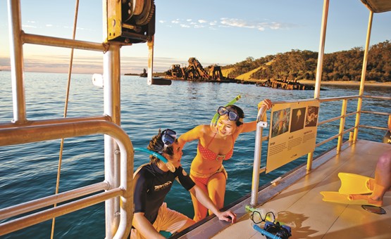 Join the boat trip for a guided snorkelling tour of the Tangalooma Wrecks, with all gear included. The Wrecks are home to a myriad of different species of reef fish, coral formations and marine life. The minimum age for snorkel tours is 6 years old.