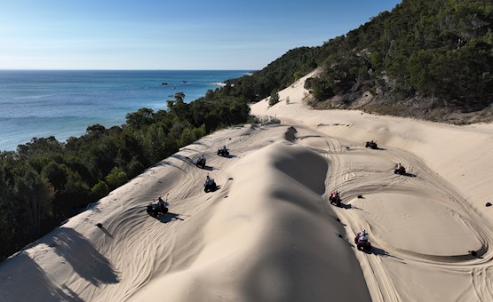 Experience the thrill of riding on an ATV quad bike along the beach and through the bushland at Tangalooma. Our professional guides will assist you regardless of your experience, providing you with basic bush track training to handle the challenging trails! Children aged 5 - 9 years old can ride on the back of a parent's bike if parents have signed all required waiver forms and provide a valid driver's licence from their country of origin. 10 - 15 year olds can ride on their own as long they are escorted by an adult, and we have parents' consent via signature on the waiver form. Individuals under the age of 18 will be allocated an appropriate quad bike in line with the manufacturer's safety and age specifications. As such they may be required to drive a smaller/lower-powered quad than those allocated to adults. Tandem quad drivers can carry a passenger only if the driver has a valid driver's licence from their country of origin. This information should be used as a guide only.