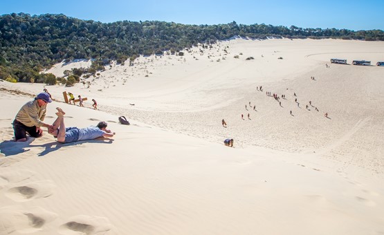 This tour is weather-dependent as the sand tobogganing cannot operate in wet weather conditions. In the event of wet weather, this tour will operate as a sightseeing tour and visit the Tangalooma Wrecks. This information should be used as a guide only. Activity and tour details, prices and timings are subject to change at any time - please refer to our notices section.