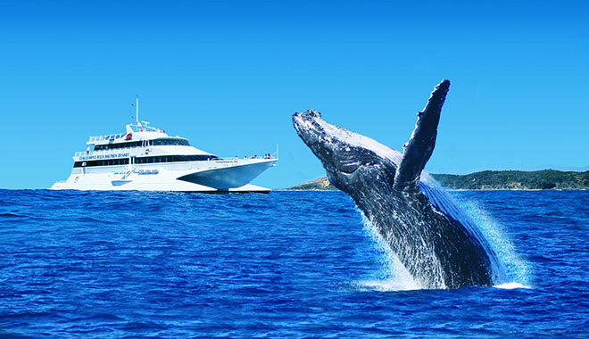 Activity 6:Seasonal Whale Watch Cruise Enhance your experience with Whale Watch Cruise around the island (Seasonal – June to October). Enjoy a relaxing cruise aboard one of our high-speed catamarans as you search for majestic Humpback Whales! An Eco Ranger will provide full commentary during the tour, and a light lunch will be served on board. This tour departs from and returns to the resort. |