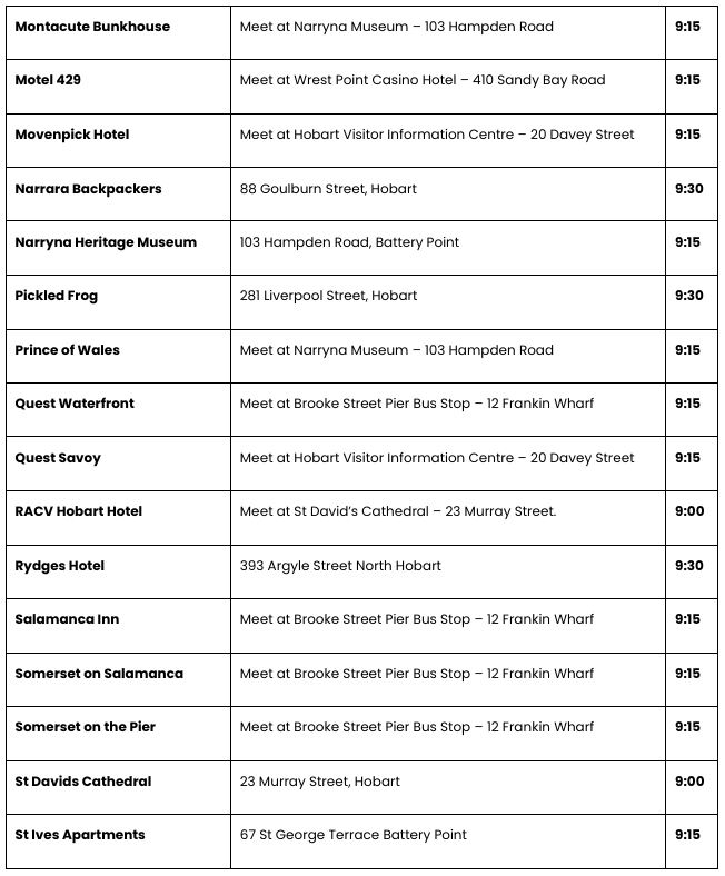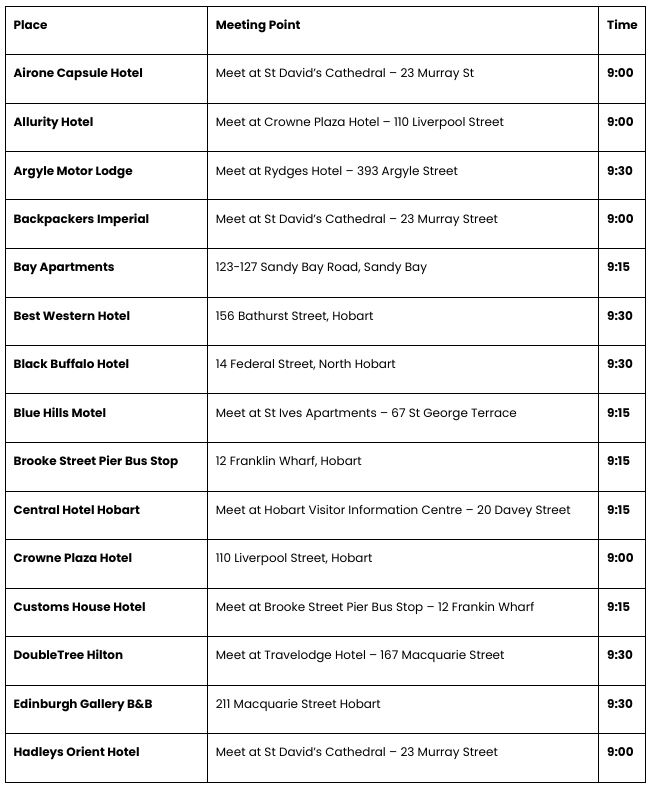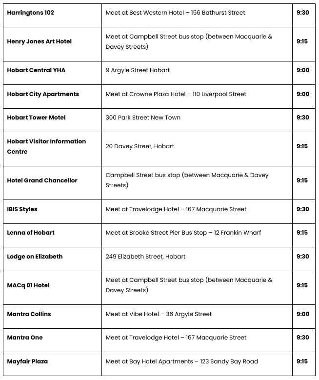 On your final morning, consider taking an early stroll to search for a platypus before breakfast. After checking out, we make our way back towards Hobart, stopping at The Steppes—a heritage site that reflects the region’s high-country sheep grazing past and features a sculpture trail and interpretive displays. As we descend from the plateau, the expansive alpine landscape gives way to fertile lowlands. We arrive back in Hobart by approximately 1:00 pm, with drop-off available at city hotels or direct transfer to the airport if needed.