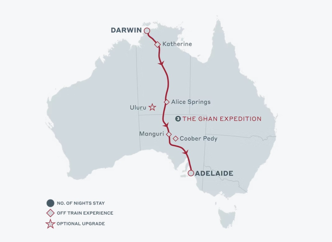 Embark on one of the world’s most iconic rail adventures aboard The Ghan Expedition, a legendary journey spanning 2,979km between Darwin and Adelaide. Operating exclusively in March and November, this four-day, three-night expedition offers unparalleled access to the breathtaking landscapes and rich cultural tapestry of Australia’s interior.