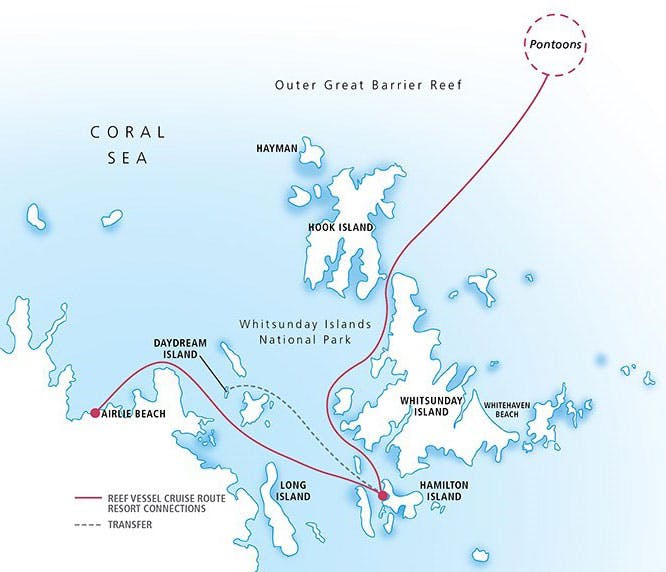 Departing either Airlie Beach, Hamilton Island or Daydream Island, spend a full day exploring the Great Barrier Reef Marine Park, the World Heritage-listed wonder off the Queensland coast. Enjoy the magic of the reef with incredible numbers of bright tropical fish and more than 1,400 species of coral.