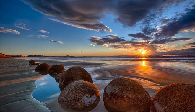 随后抵达观赏摩拉基海滩上散布著很多圆形巨石,也有一些大圆石分布在砂巖峭壁的周围,每块巨石都重达数吨,高达两米。