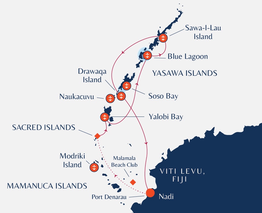 在蓝色礁湖邮轮(Blue Lagoon Cruise),我们为访问斐济的游客提供了对这个美丽太平洋岛国最佳的行程。我们相信,要体验斐济的真正精髓,您需要登陆无人居住的岛屿,沐浴在温暖的热带海水中,探索多彩的水下世界。与当地的亚萨瓦人村民会面,品味传统的斐济美食,享受岛屿漫步,惊嘆于最神圣的洞穴,当然还有在棕榈树林环绕的沙滩上晒太阳!