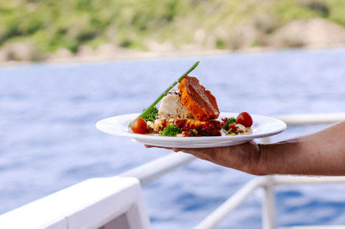 今天早上,我们可以选择参加当地岛屿学校的选择性远足,然后前往德拉瓦卡岛。在这里,我们将与一位海洋生物学家一起参加一个关于当地海洋生物和区域内的志愿者保护工作的解说;在5月至10月期间,您将有机会与壮观的蝠魟一起浮潜。今晚的晚餐是在星光下(如天气允许)在Sky Deck上举行的烧烤晚餐。今晚,我们在一起的最后一晚,我们以斐济风格派对!