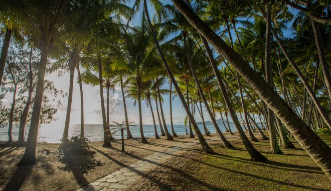 接下来登上观景台,饱览 凯恩斯市区与珊瑚海 (Coral Sea) 全景,并欣赏四周的雨林美景。最后来到 棕榈湾 (Palm Cove),这座被棕榈树包围的滨海村落是放松的好地方,您可以在码头散步,或悠闲享受细沙。