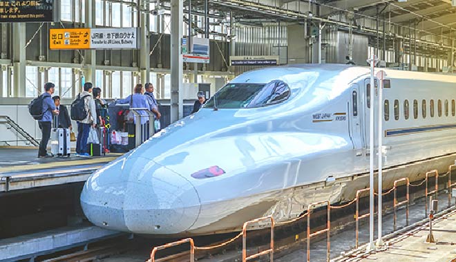 乘坐新干线由东京直达大阪,不只能让您体验时速320公里的飞驰感,还能节省大量时间,另外更附有宽敞座位及大面观景窗,让您尽情享受日本乡村美景!