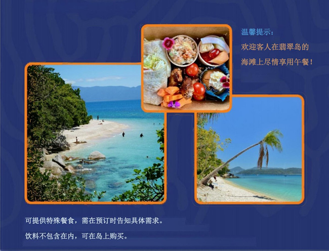 时间:上午8:45/10:00从凯恩斯出发,前往翡翠岛。下午16:45/17:30返回到凯恩斯。