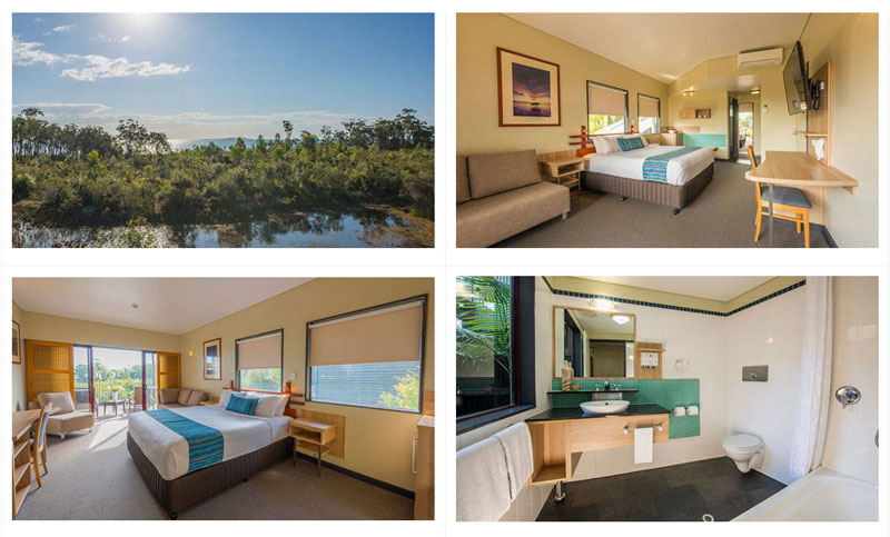 升级至昆士兰风格的客房包括一张特大号床、50 英寸纯平电视和时尚的家具,由蜿蜒穿过灌木丛的木质走道相连,让您可以从私人空间欣赏到酒店翼楼周围自然植被的最佳景观。