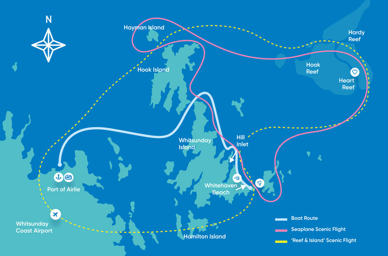 09:00am - 09:25am 艾尔利滩市区集合点上车,10:00am从艾尔利港 (Port of Airlie)开船,05:30pm – 05:45pm回到码头,06:00 – 06:30pm返回下榻酒店。