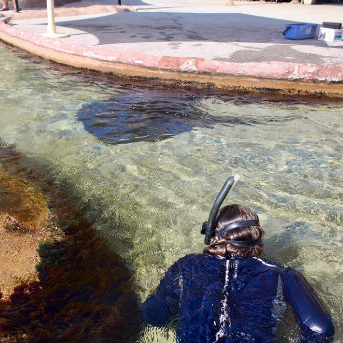 坐在浅水区,魟鱼会主动游到膝盖上撒娇,是疗癒又欢乐的亲子回忆!