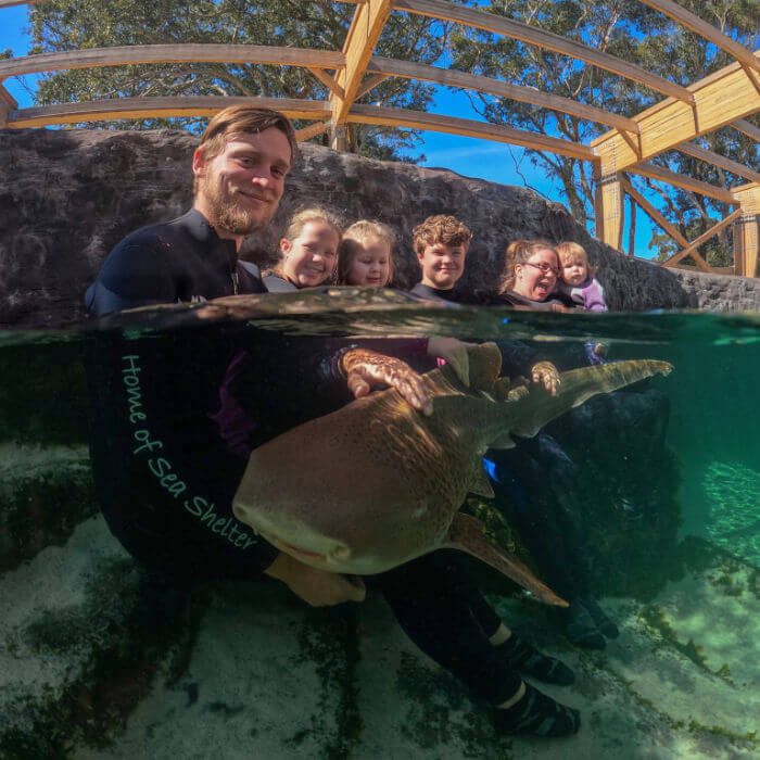 与可爱的港湾鲨、魟鱼和全新成员绿蠵龟 Patrisha 一同在户外自然水域中探索。