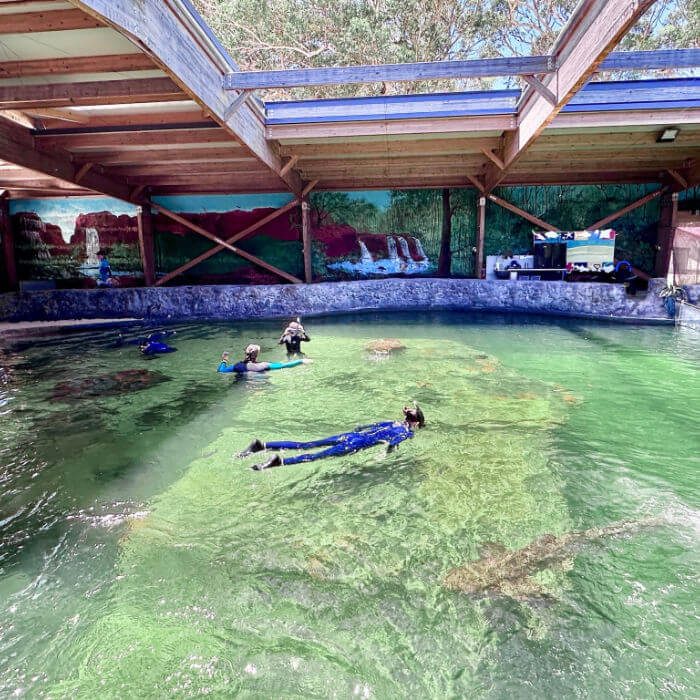 与斑马鲨、热带鱼与多种魟鱼在室内潟湖中浮潜。适合浮潜初学者与亲子同乐。