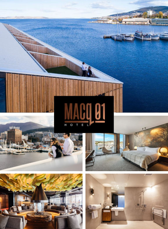 MACq 01 Hotel 位于霍巴特海滨,是塔斯马尼亚颇具特色的精品奢华酒店。酒店以「故事旅馆 Storytelling Hotel」为概念,每一间客房都以塔州历史人物、文化与传说为灵感,巧妙融合现代设计与地域人文,让入住不仅是住宿,更像一次沉浸式的故事探索旅程。