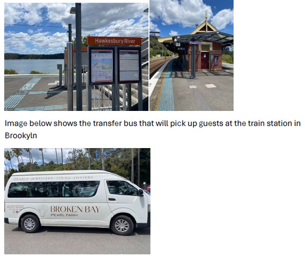 回程时间表:布罗肯湾珍珠农场巴士出发返回霍克斯伯里河火车站:中午12:30