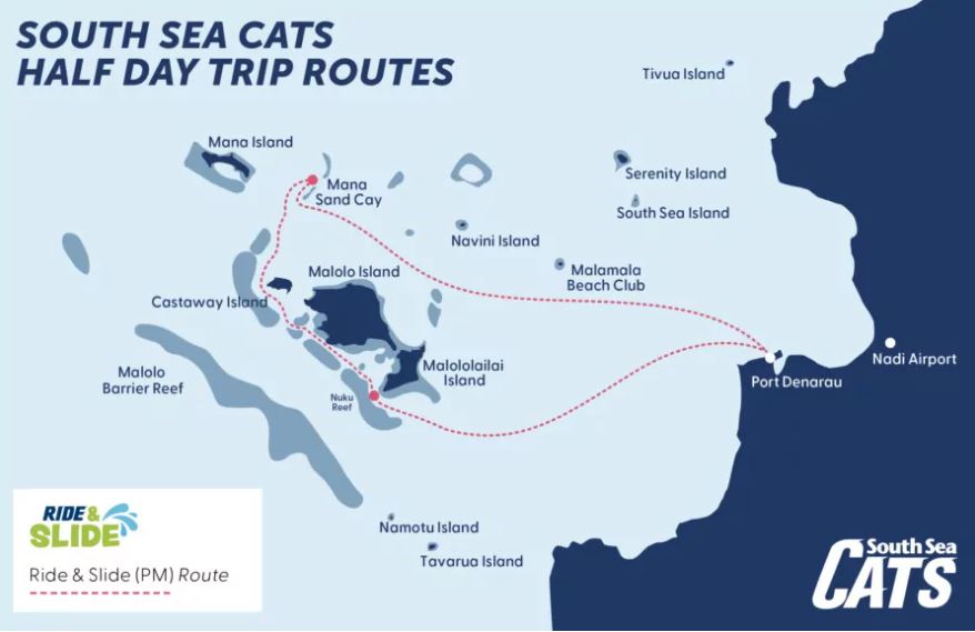 此行程为 下午半日游,你将搭乘全新高速双体船,快速穿梭马马努卡群岛周边,并在多个海域停靠进行: