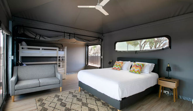 在这个系列中最大的帐篷中体验罗特尼斯特岛的大自然,亦有酒店的舒适。时尚的家具和双面洗手台浴室,豪华帐篷提供了高级露营体验。升级至豪华海景帐篷,可欣赏令人惊嘆的海景。