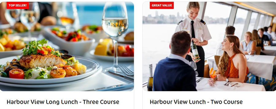 搭乘我们的海港景观午餐游船,享用精致的二道式现代澳洲料理,由经验丰富的厨师即场烹调,将美食与悉尼港壮丽景色完美融合