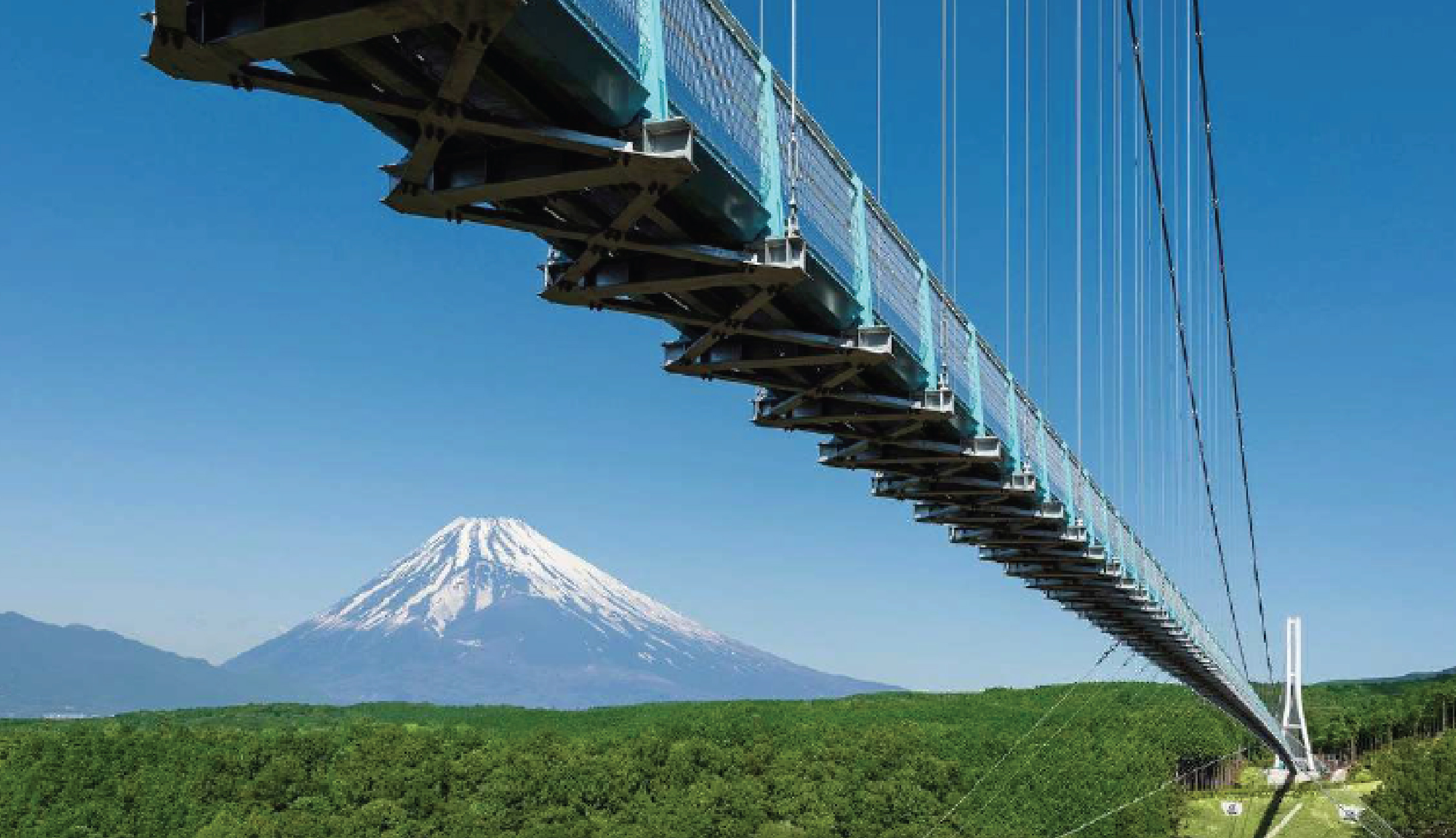 空步道】,這里全長400米,是日本最長的步行專用吊橋。在這里可以同時看到三個日本之最,分別是「日本最長的吊橋」、「日本最高的山峰富士山」和「日本最深的海灣駿河灣」。