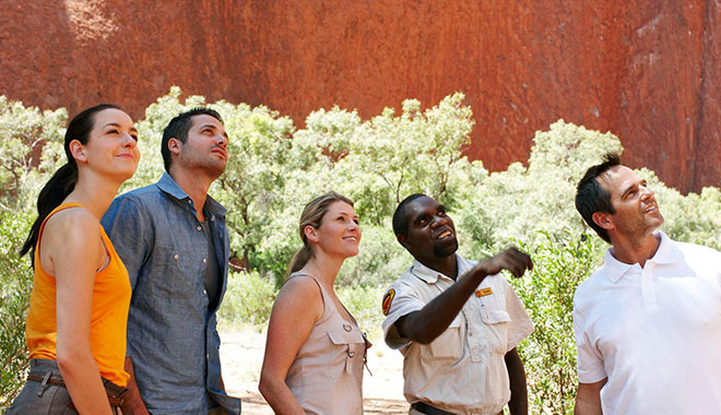 日出前,乘車跟隨導遊前往烏魯魯日出觀景區(Talinguru Nyakunitjaku)欣賞烏魯魯日出。走上日出觀景平臺見證太陽發出的第一縷光芒照射在烏魯魯巨岩上顏色變換的奇景(天氣條件限製)。等太陽完全升起後,導遊帶領大家開始烏魯魯文化徒步之旅。沿著Kuniya小路您可以欣賞到原住民的岩畫,看到原住民賴以生存上韆年的Mutitjulu水潭,瞭解當地的特色植物,聽到原住民的傳統故事等等。徒步結束後,乘車環遊烏魯魯巨岩,欣賞不同角度的景色。最後來到烏魯魯卡塔丘塔文化中心,瞭解阿南古人的文化和生活方式,參觀Maruku手工藝作坊,還有機會目睹原住民藝術家現場創作獨特的藝術作品。