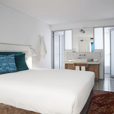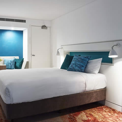 酒店的緊湊型客房以明亮的色彩和清爽乾淨的白色裝飾。每間客房均設有舒適宜人的特大床(可分為兩張單人床)以及帶獨立淋浴間和衛生間和開放式洗手盆的私人浴室設施。