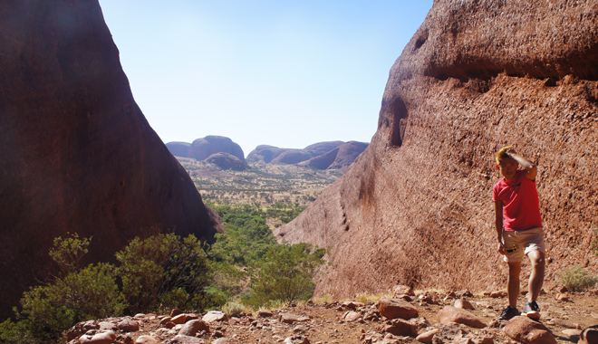 下午從度假村出發,前往烏魯魯國家公園, 抵達馬拉徒步停車場後,開始1個半小時的馬拉徒步之旅。您將會沿著烏魯魯岩石腳下阿南古人神聖的遺跡探尋夢幻時期阿南古人的祖先馬拉人舉行宗教儀式、學習和生活的地方 — 陡峭的懸崖、深邃的峽谷和寧靜的水潭,在藍天白雲和陽光的照耀下,峽谷如同燃燒的石壁, 甚為壯觀。如果有幸遇到下雨天,堪久峽谷(Kantju Gorge)還會形成壯觀的岩石瀑布。整個徒步單程1公里,往返2公里。