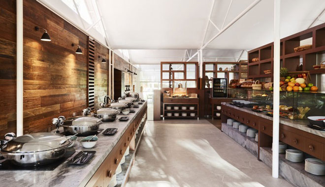 酒店內餐飲: 公寓房內客人可以用廚房自行燒煮佳餚,公寓離商品中心步行僅幾分鐘。若不想開火,臨近的酒店或商品中心的餐廳用餐。