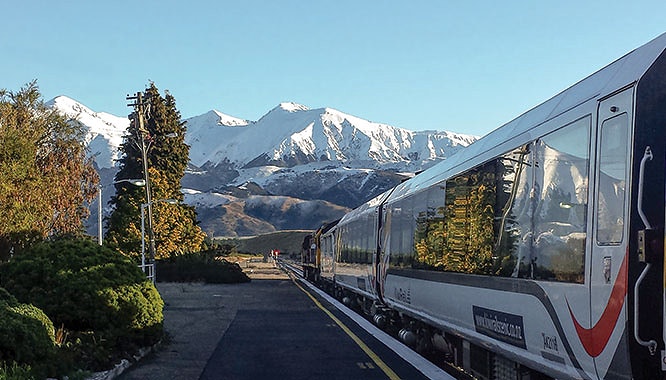 在舒適的車廂中,旅客可以欣賞坎特伯雷平原(Canterbury Plains)阡陌相交的農田,以及壯觀的峽谷和懷馬卡里里河(Waimakariri River)流域的河谷。之後列車將攀上雄偉的南阿爾卑斯山,抵達亞瑟通道國家公園(Arthur’s Pass National Park),再轉乘旅遊大巴前往格雷茅斯(Greymouth)。