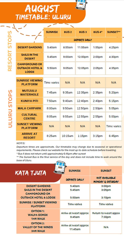 提供艾爾斯岩度假村所有飯店便利接送服務,包含:
